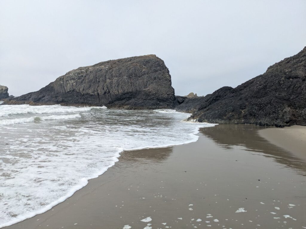 Near seal point, maybe? Tide pool fun! More tide pool fun! I LOVE the tide pools, they’re so interesting!! It’s hard to see, but there’s a harbor seal down there! And then I kept seeing them all along the coast for the next 2 days. I like to think it was all the same seal and she was curious and following me down the coast to see what I did. Hey, it’s possible, right?!? Jellyfish on the beach? I actually don’t know, but whatever it is these things show up all over the placeThe start of the Sand Dunes Natl Rec AreaThis is one of those crossings you’re supposed to do at low tide, otherwise it gets a little dicey. It was fine when I crossed, the water was just starting to get up to the rocks, no big deal. The trail still does go through the jungle too, don’t forget about that, it’s not all beaches and ocean! A hiker/biker site on the beach, that little trail behind my tent went straight to the beach 🥰